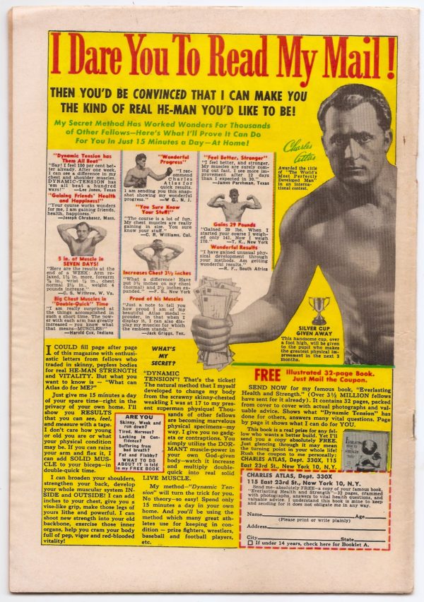 Condition: Golden Age Era comic in Low grade condition with cover wear consistent with grade. Comic is attached at staples. No Cut Outs, No Writing. Comic is complete and has reinforced centerfold.