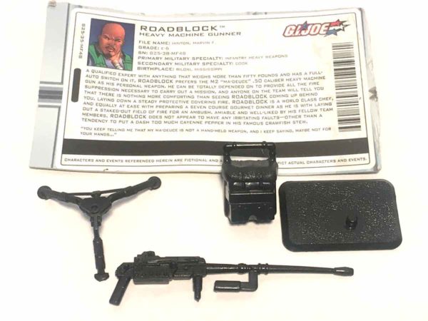 About This Item:  Roadblock v13 was a Toys R Us Exclusive released as part of the Anti-Venom Taskforce set. Roadblock comes with his gun, tripod, backpack and filecard.