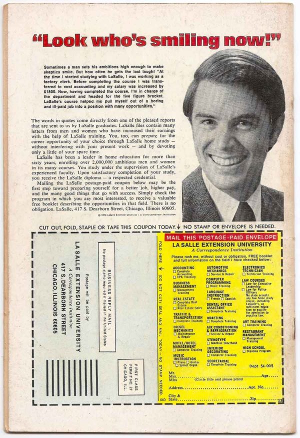 Amazing Spider-Man # 111 features the Gibbon and Kraven The Hunter. Condition: Mid Grade Condition with Spine wear. Name written in the margin of first page. NO Cut-Outs and NO Tears.