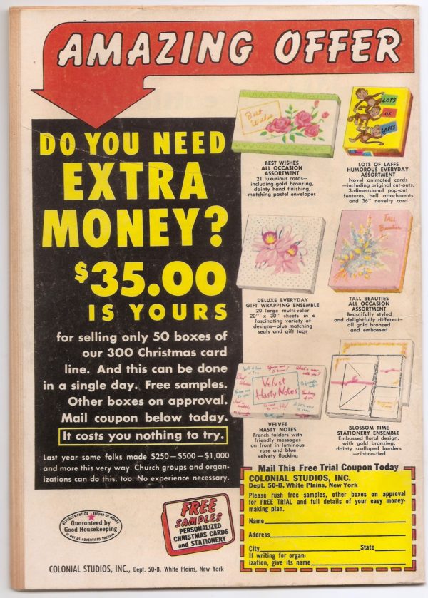 Condition: Golden Age Era comic in Low grade condition with cover wear consistent with grade. Comic is attached at staples. No Cut Outs, No Writing. Comic is complete and has reinforced centerfold.