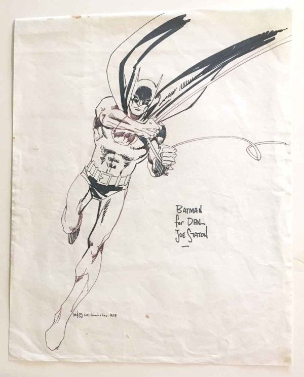 About: This Full Figure Batman is a vintage convention sketch by DC comic artst Joe Staton, b. 1948. The artwork is done in the traditional DC “House Style” of the 1970’s based on Neal Adams and Dick Giordano’s Batman work.