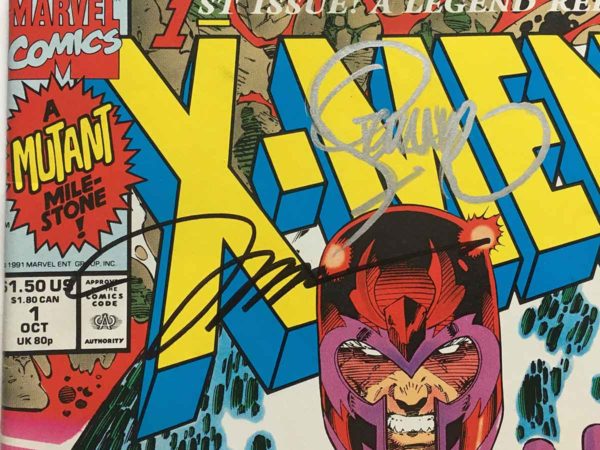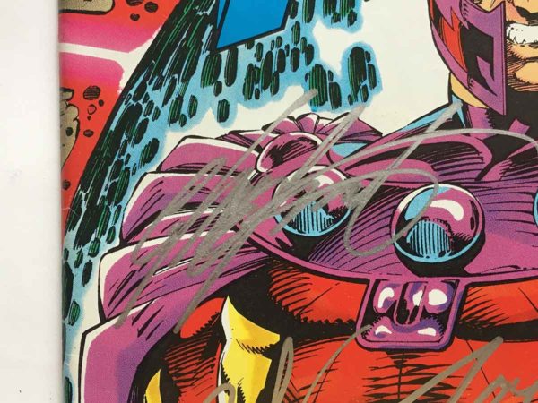 Jim Lee, Jim Steranko, and Roy Thomas at Mike Carbo’s Big Apple Con 2017. The book was also signed by Chris Claremont at New York Comic Con 2016. Joe Sinnott and Scott Lobdell signed the comic at The Ultimate Comic Book Trade Show & Expo 2016. Tom Palmer signed the book at the Mohegan Sun Terrific Con 2016. John Romita Jr. signed the book at the New York Comic Con 2017.